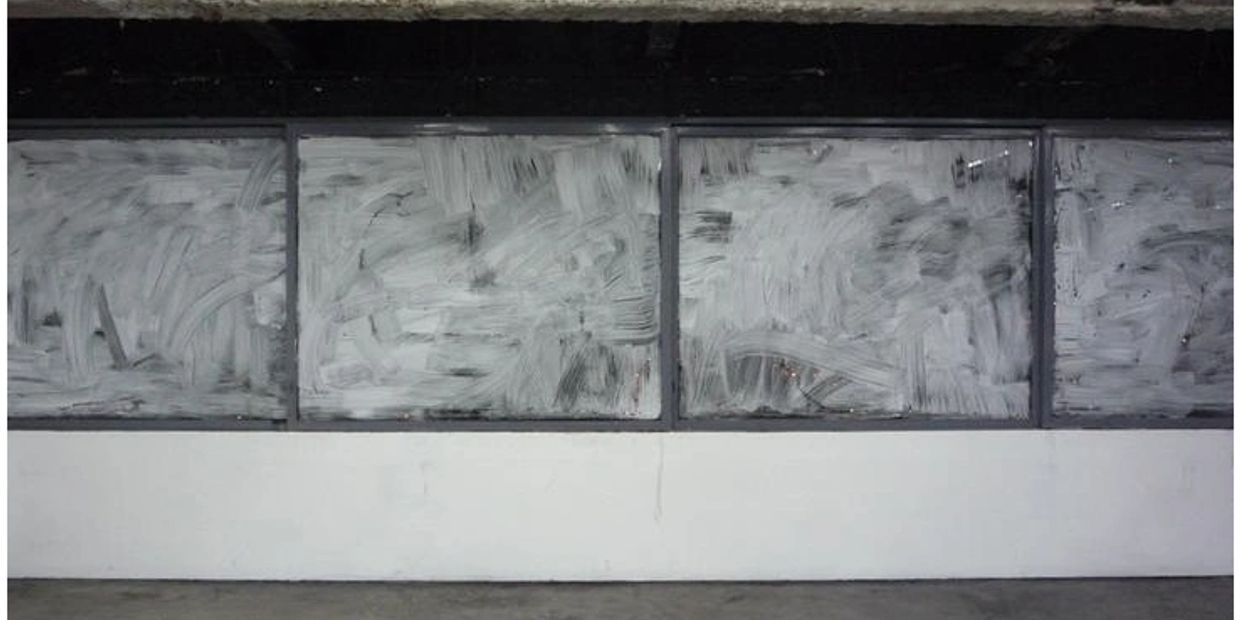 Santiago eligio pintura blanca para aplicarla con brocha sobre los vidrios de las ventanas y anular así su función arquitectónica, acción con la que simultáneamente se canceló al espectador la contemplación del paisaje externo. Esta sustracción tuvo dos efectos: Durante el día, la entrada del sol creaba un contraluz que multiplicaba las cualidades de transparencia, frialdad y liquidez de la pintura aplicada a las ventanas, fenómeno pictórico que semi-ocultaba el paisaje Tapatío. Por la noche, la falta de luz del exterior y la brillante iluminación artificial dentro de OPA, aumentaban la percepción de opacidad, pastosidad y calidez de la pintura aplicada a las ventanas, efecto con el que se concretó la condición de monocromo de esta intervención, y con la cual se volvió aún más difícil percibir al paisaje exterior.
